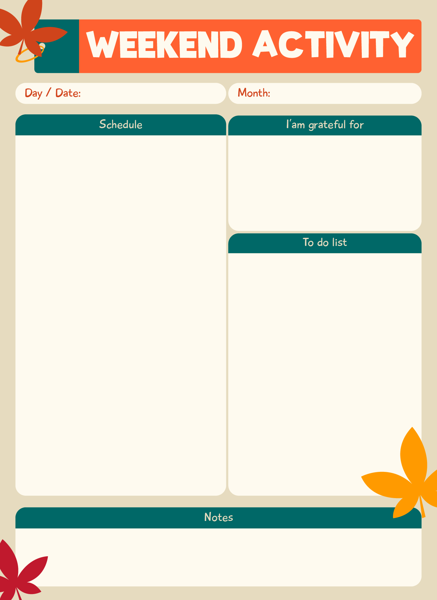 Fall Weekend Activity Planner