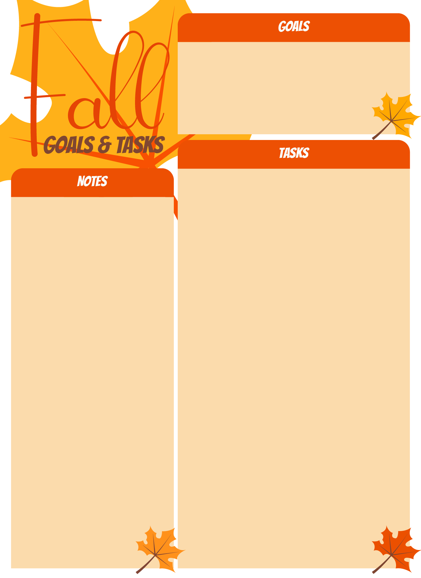 Printable Fall Goals And Tasks List
