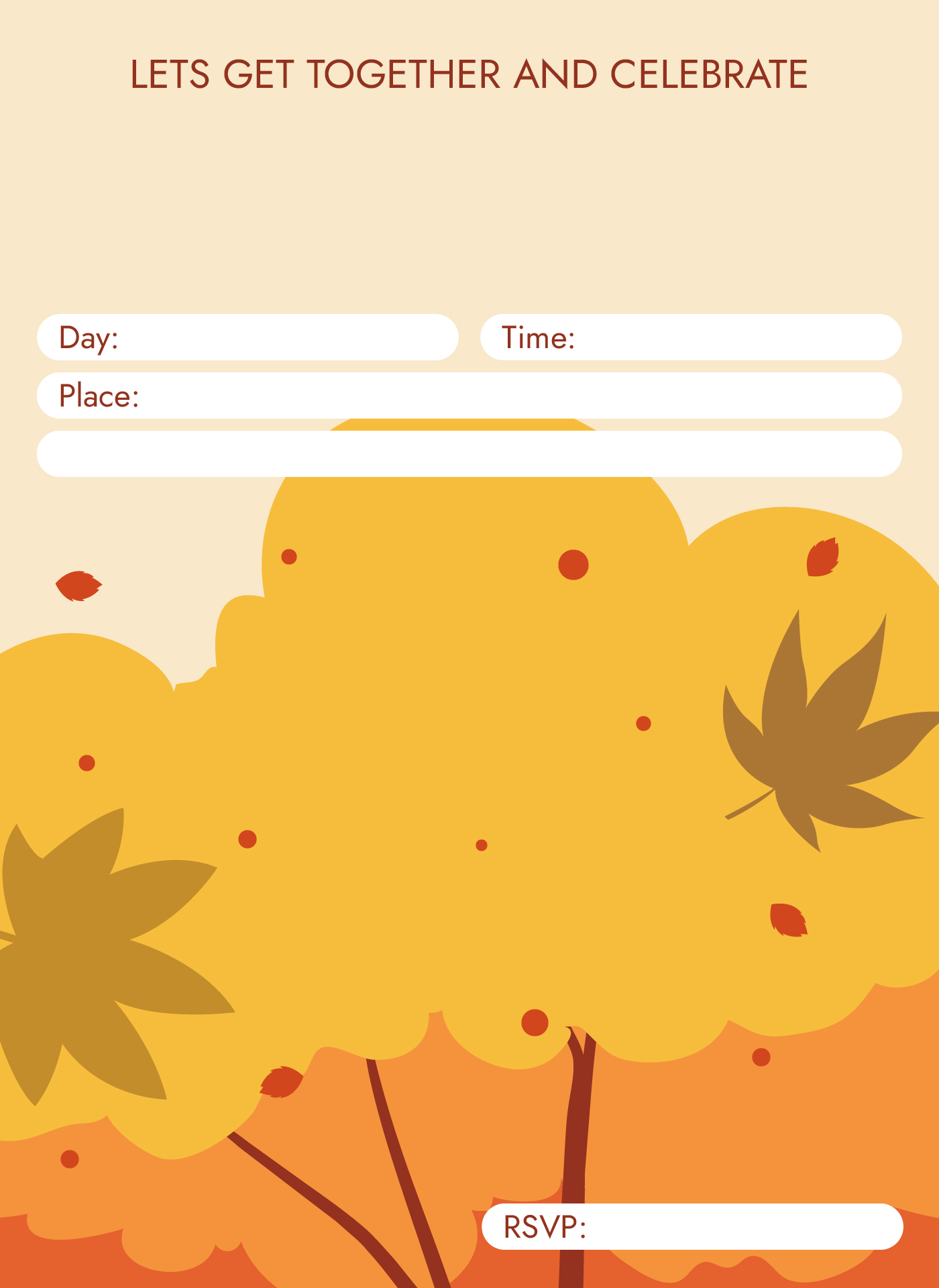 Fall party invitations templates are pre-designed invitation layouts that you can customize and print at home. These templates come in a variety of fall-themed designs, including leaves, pumpkins, and cozy autumn colors.