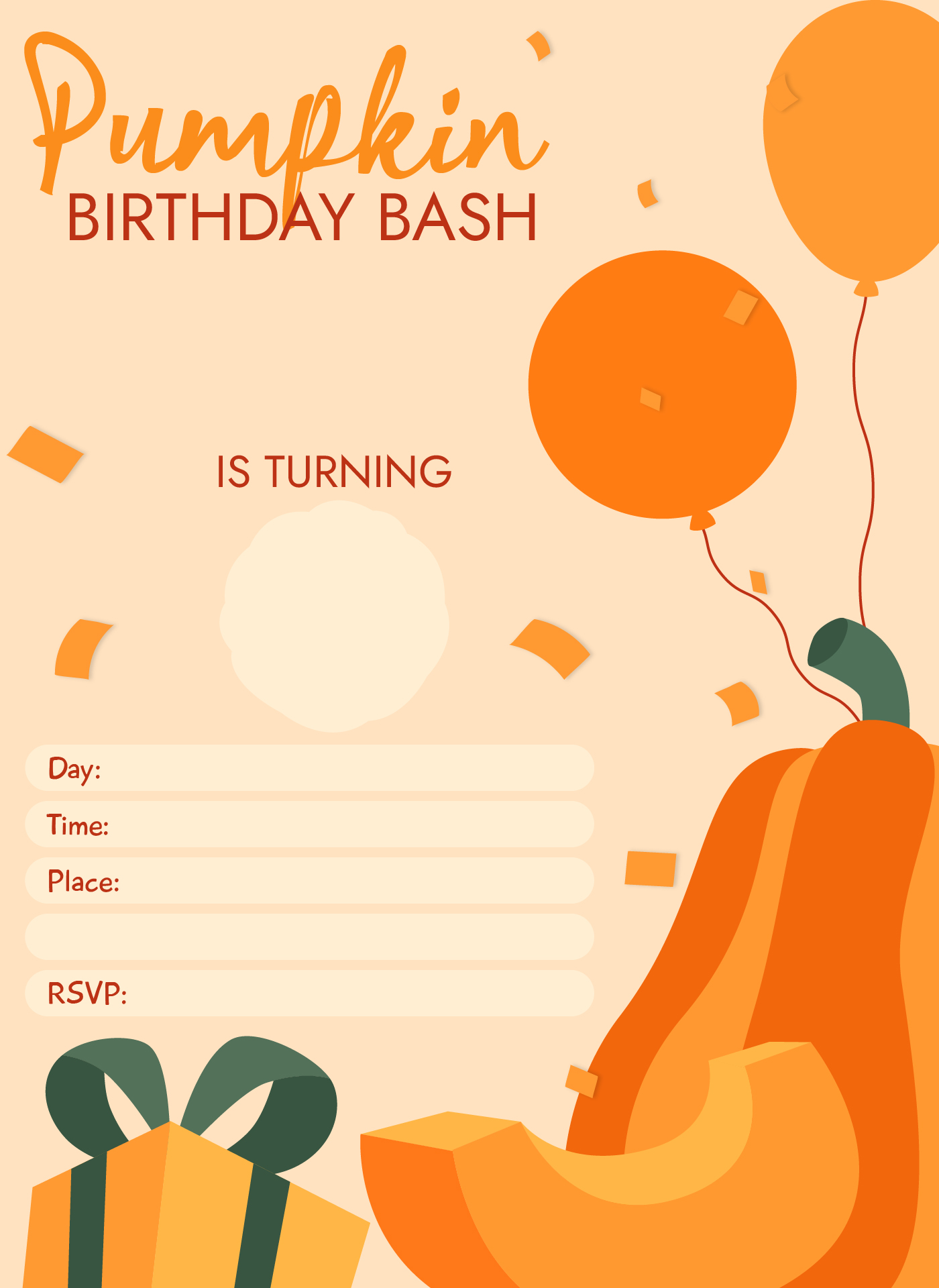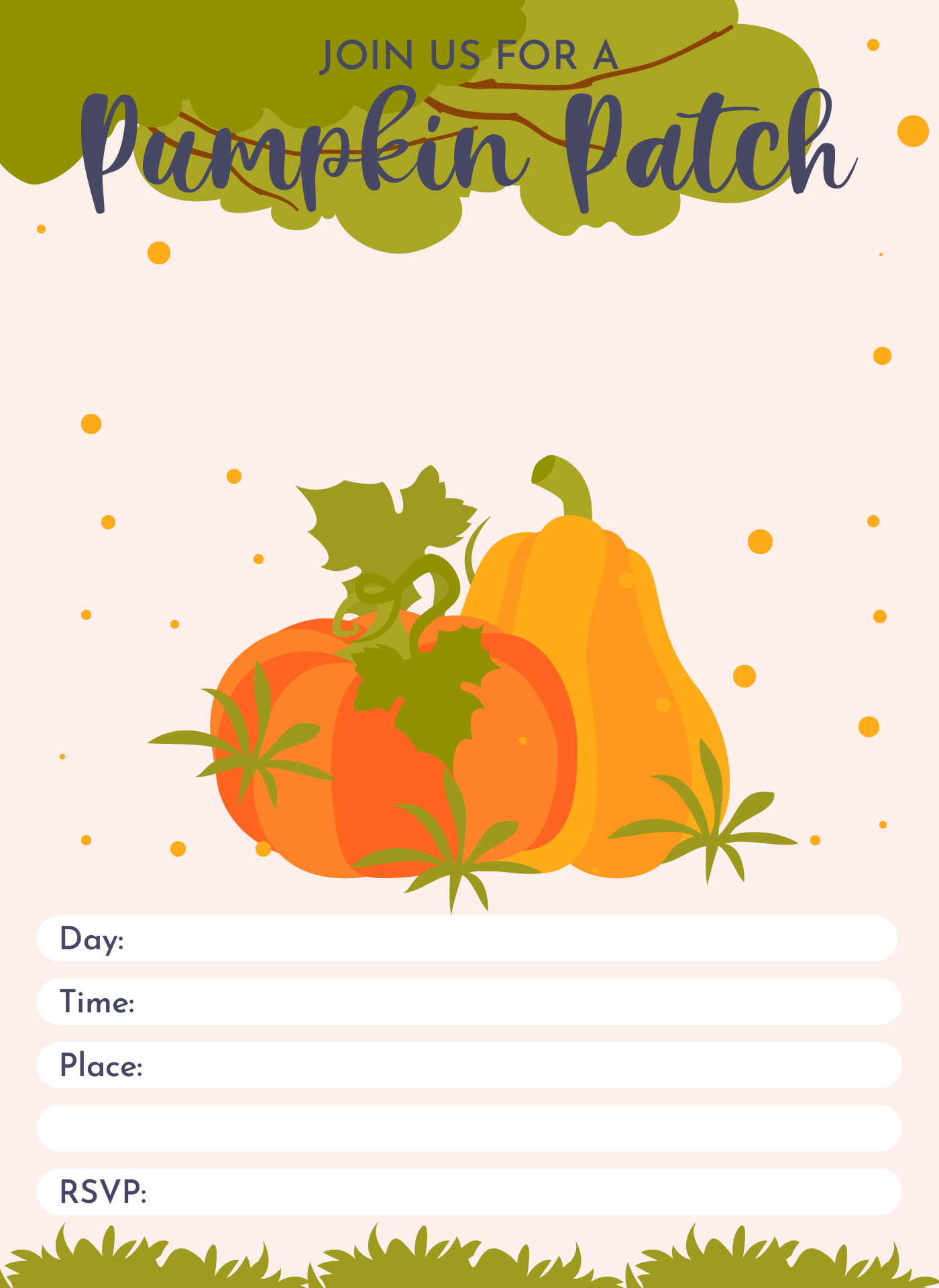 - Pumpkins: Pumpkins are another popular motif for fall party invitations, as they are strongly associated with fall festivities such as Halloween and Thanksgiving. A simple pumpkin design can add a touch of whimsy to your invitations, while a more elaborate pumpkin patch scene can create a festive atmosphere for your event.