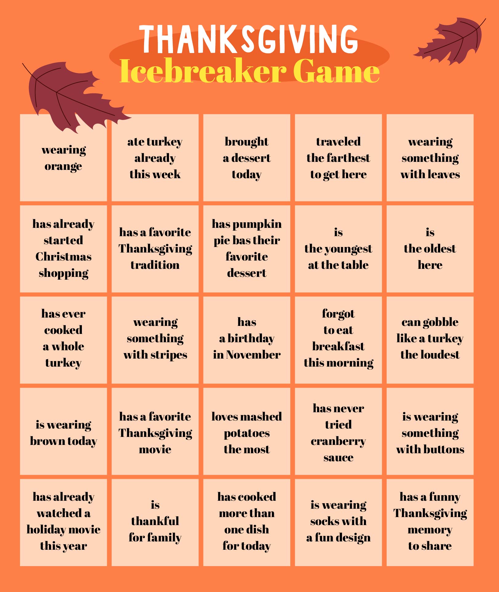 - Incorporate Thanksgiving Trivia Questions: You can use trivia questions related to Thanksgiving history, traditions, and food, and ask players to answer them before they can mark off a square on their bingo card. This will not only test their knowledge but also add a competitive element to the game.