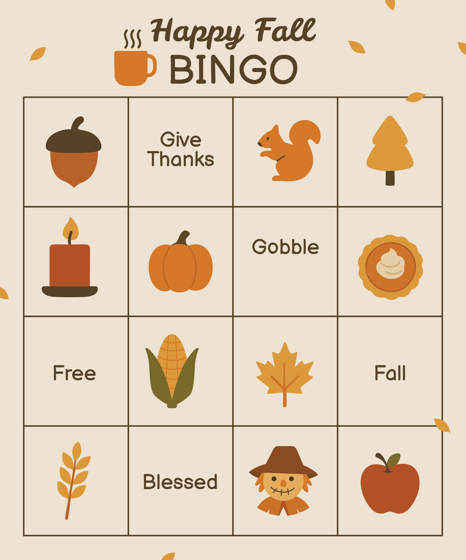 - Autumn Leaves: The rich hues of autumn leaves are a beautiful sight during the fall season. You can expect to find leaf designs in various colors and shapes on Thanksgiving bingo sheets, bringing a touch of nature to the game.