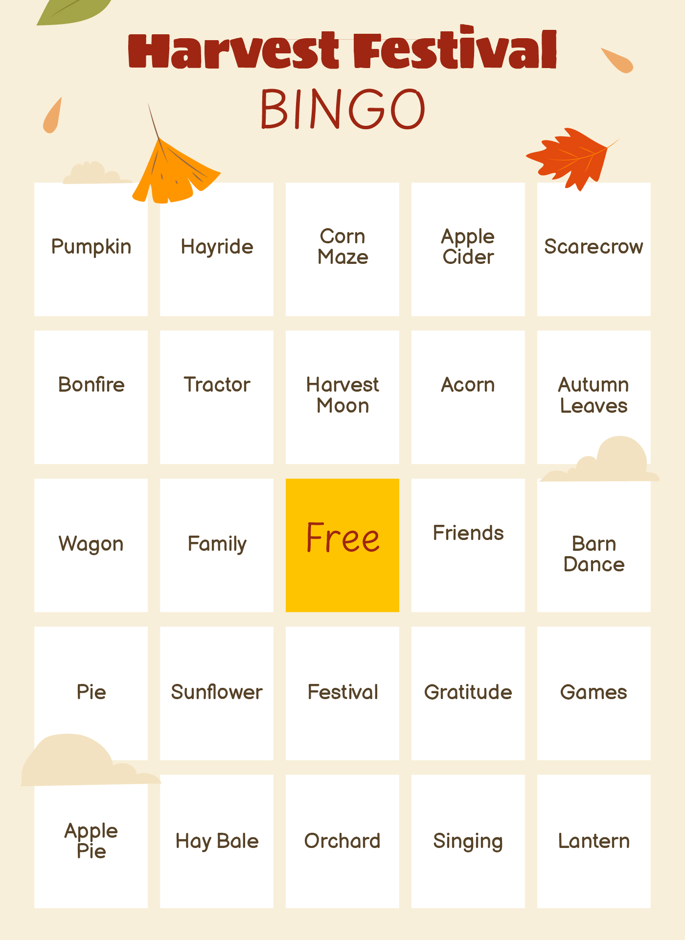 - Fall Harvest Theme: The fall harvest theme is another great option for Thanksgiving bingo sheets. This theme includes images of pumpkins, apples, cornucopias, and other symbols of the fall harvest season.