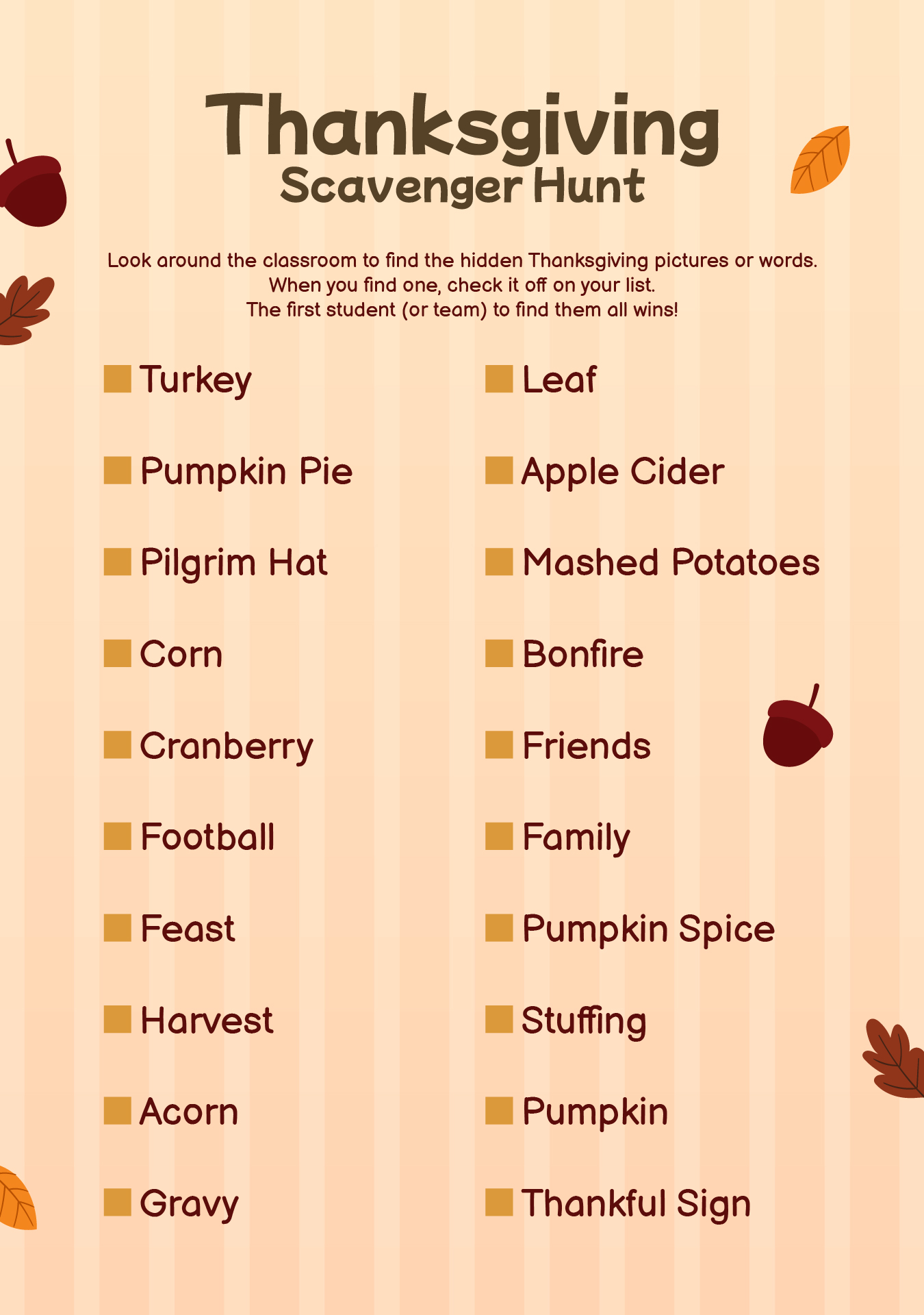 - Add a Twist to the Traditional Bingo Game: Instead of playing traditional bingo, why not add a twist to the game? You can introduce special rules or challenges that players must complete in order to mark off a square on their bingo card. For example, you can make players sing a Thanksgiving song before they can mark off a square, or perform a silly dance. This will add an element of fun and excitement to the game.