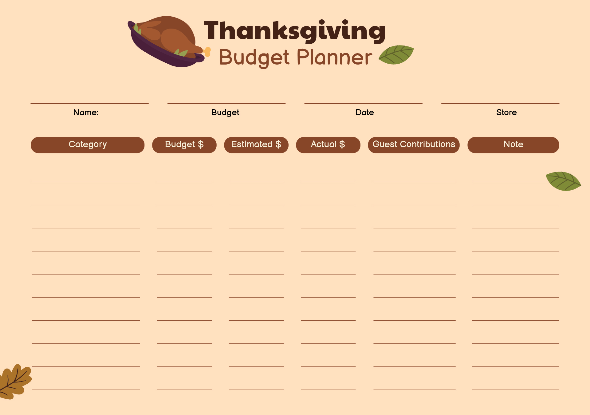 Thanksgiving Budget Planner Template