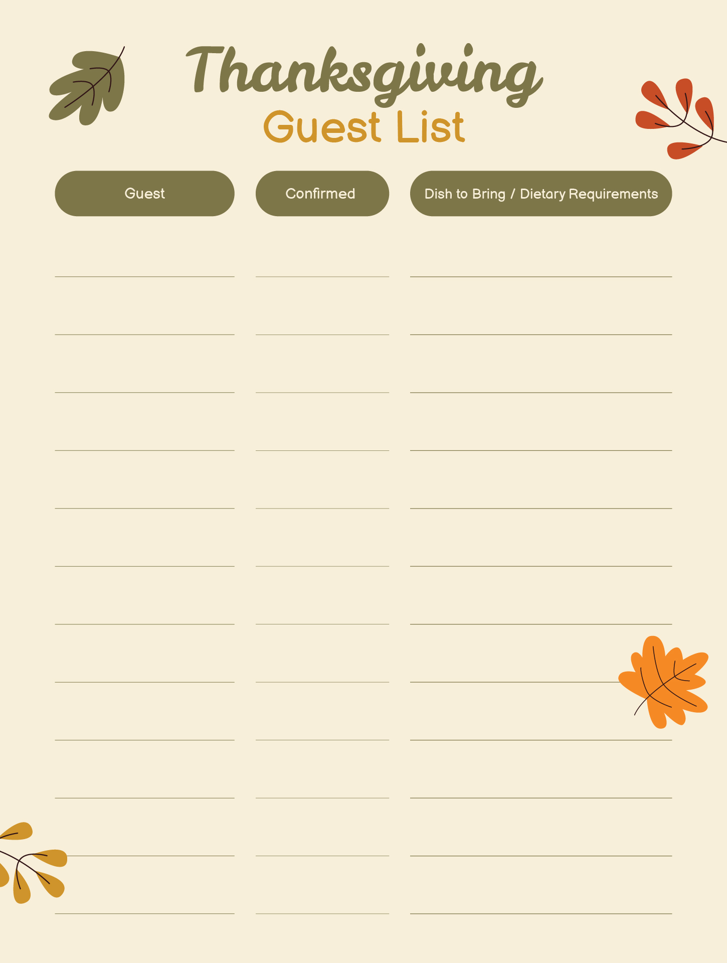 Thanksgiving Guest List Printable