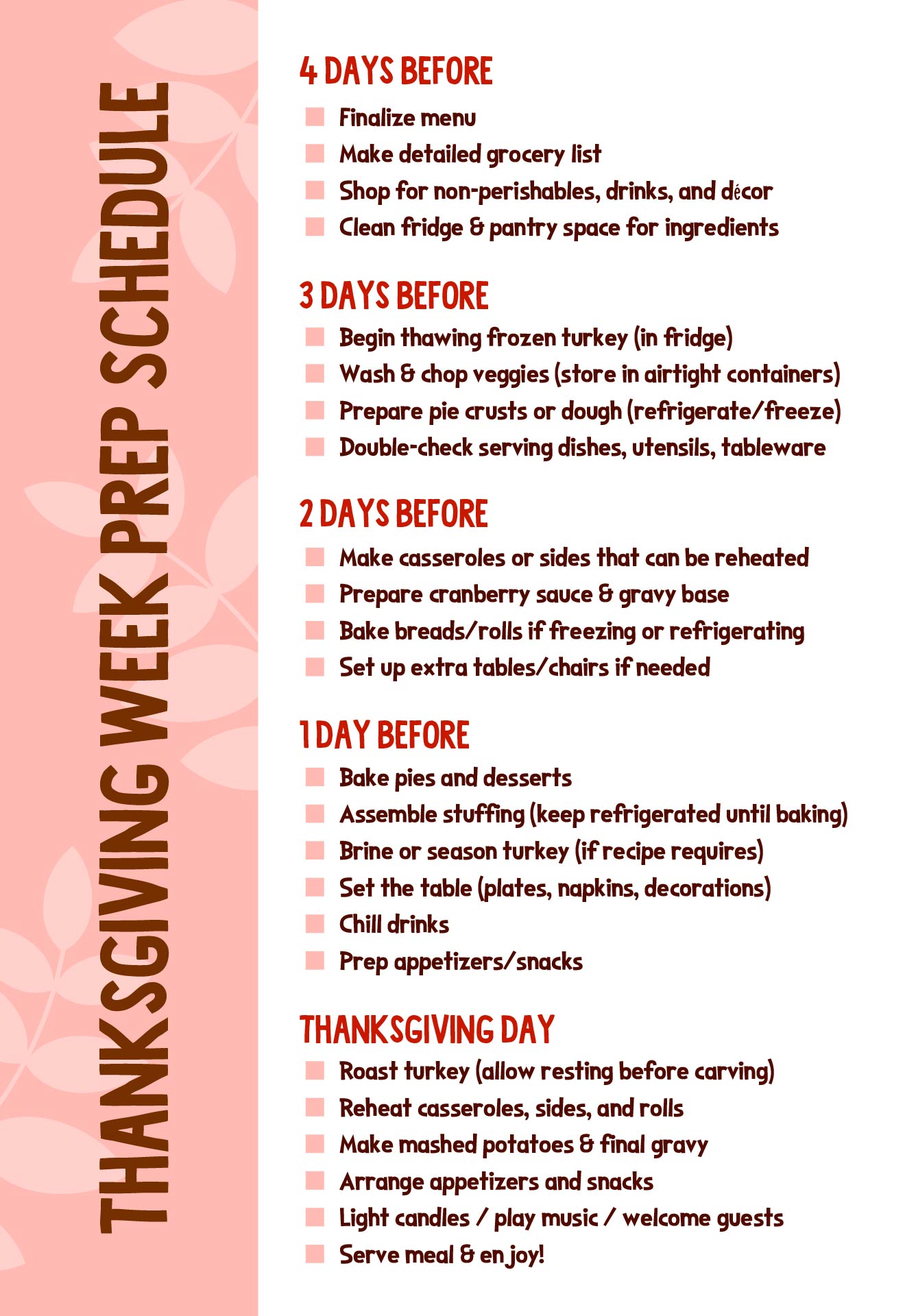 Thanksgiving Week Prep Schedule Printable
