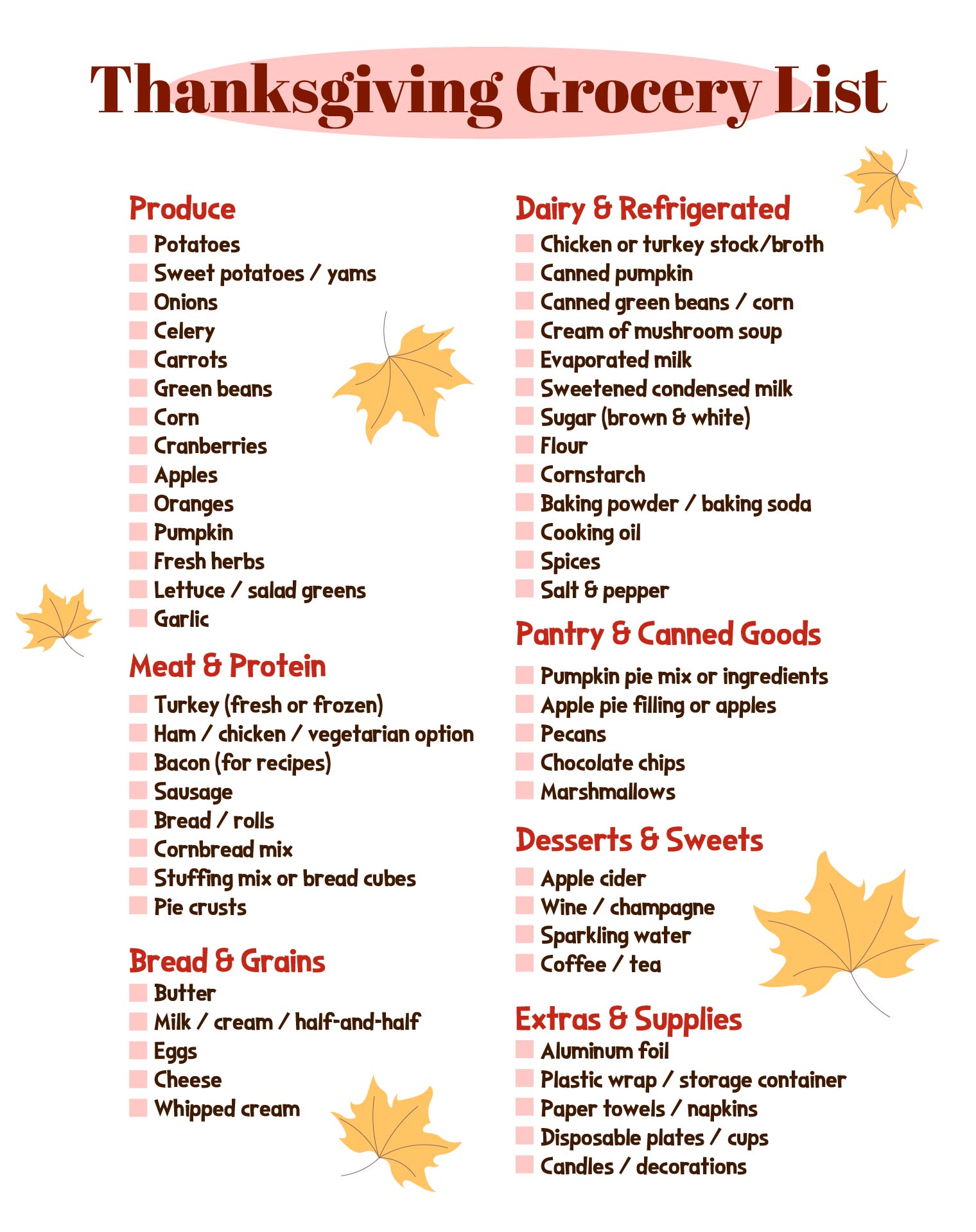 Printable Thanksgiving Grocery List
