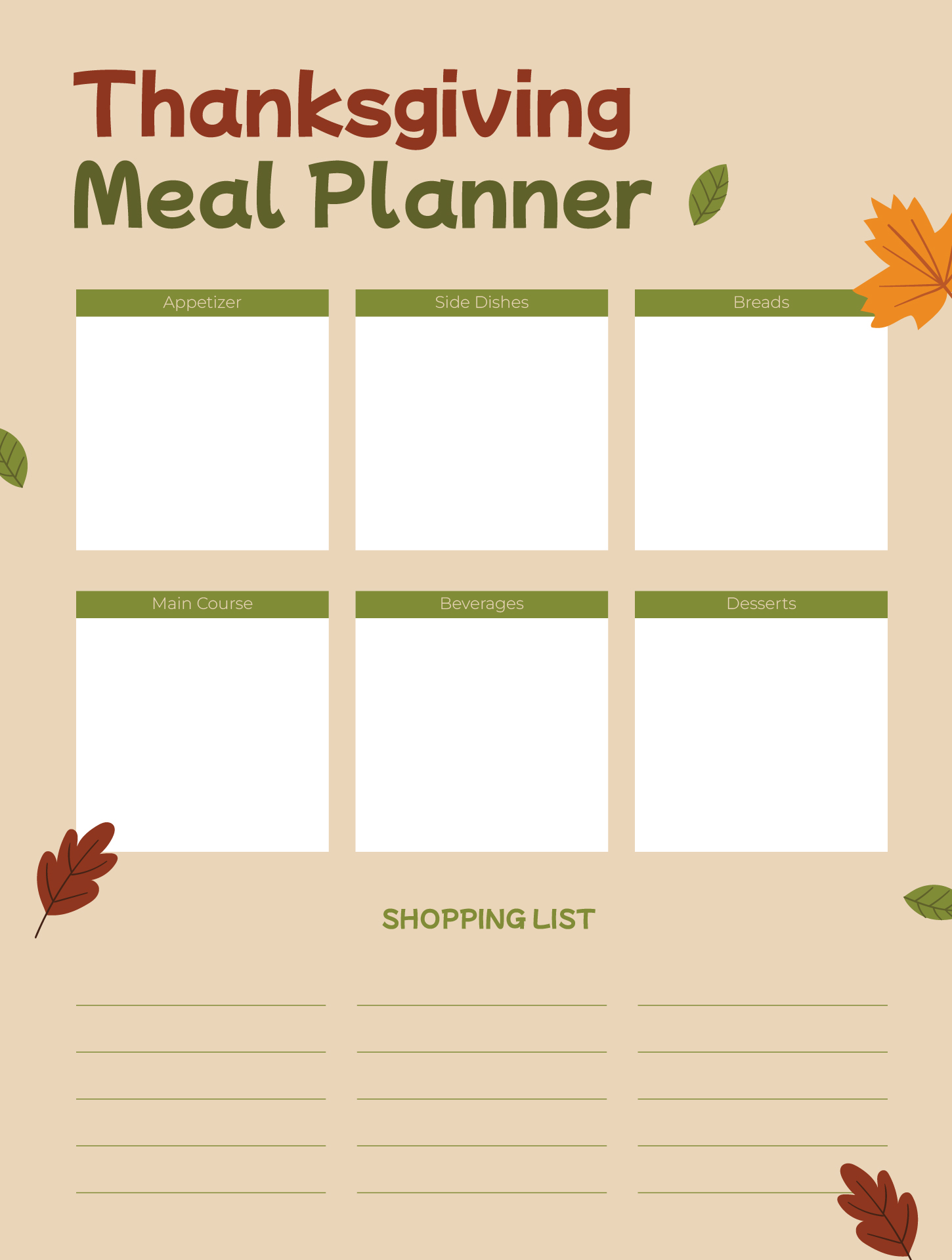 - Daily Planner Layout: This can help you break down all the tasks you need to complete leading up to Thanksgiving day. Include sections for meal planning, grocery shopping, cleaning, and any other tasks you need to accomplish.