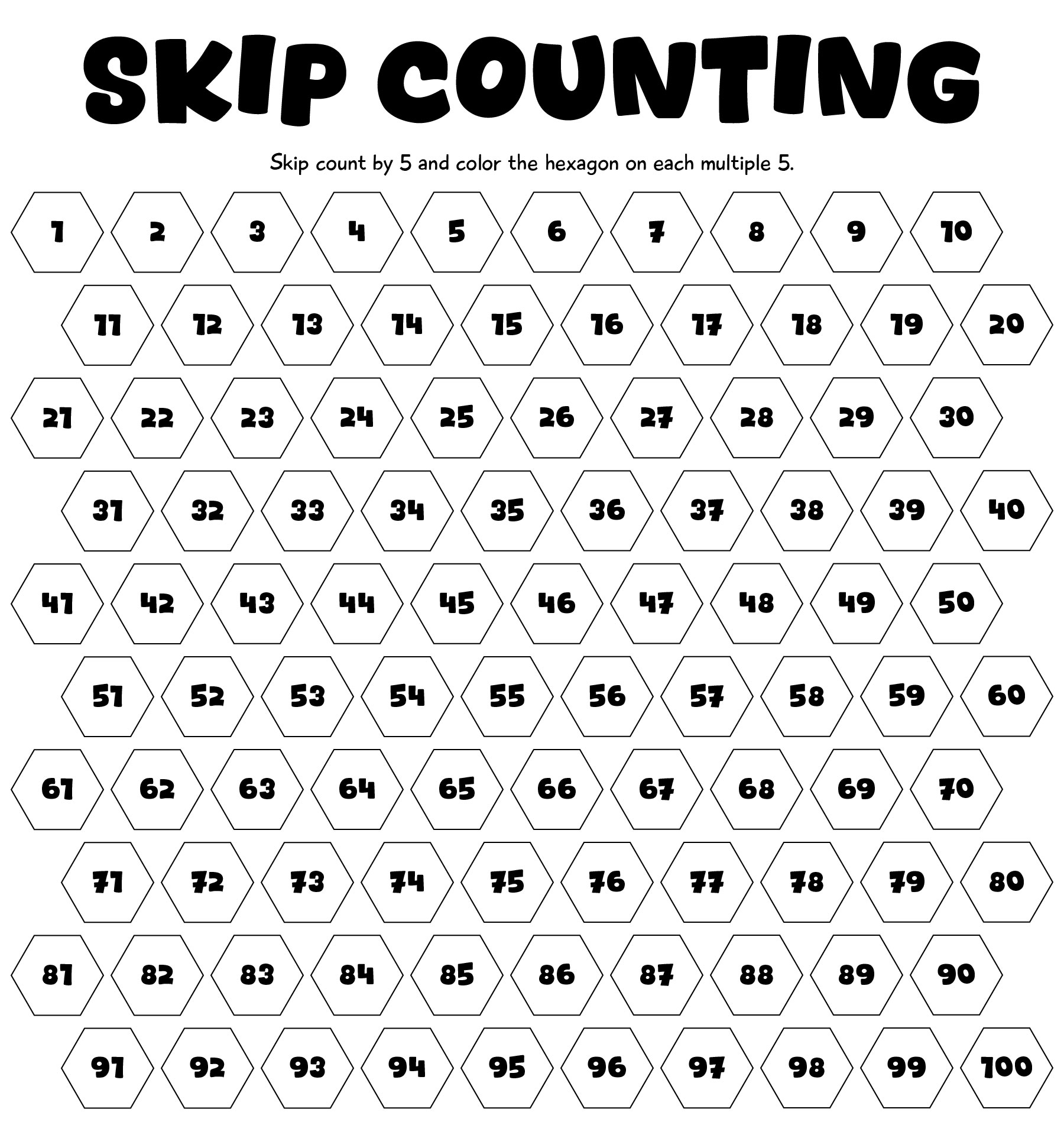 - Skip Counting Practice: Have students practice skip counting by twos, fives, or tens using the printable counting chart. This activity can help reinforce multiplication concepts and improve number fluency.