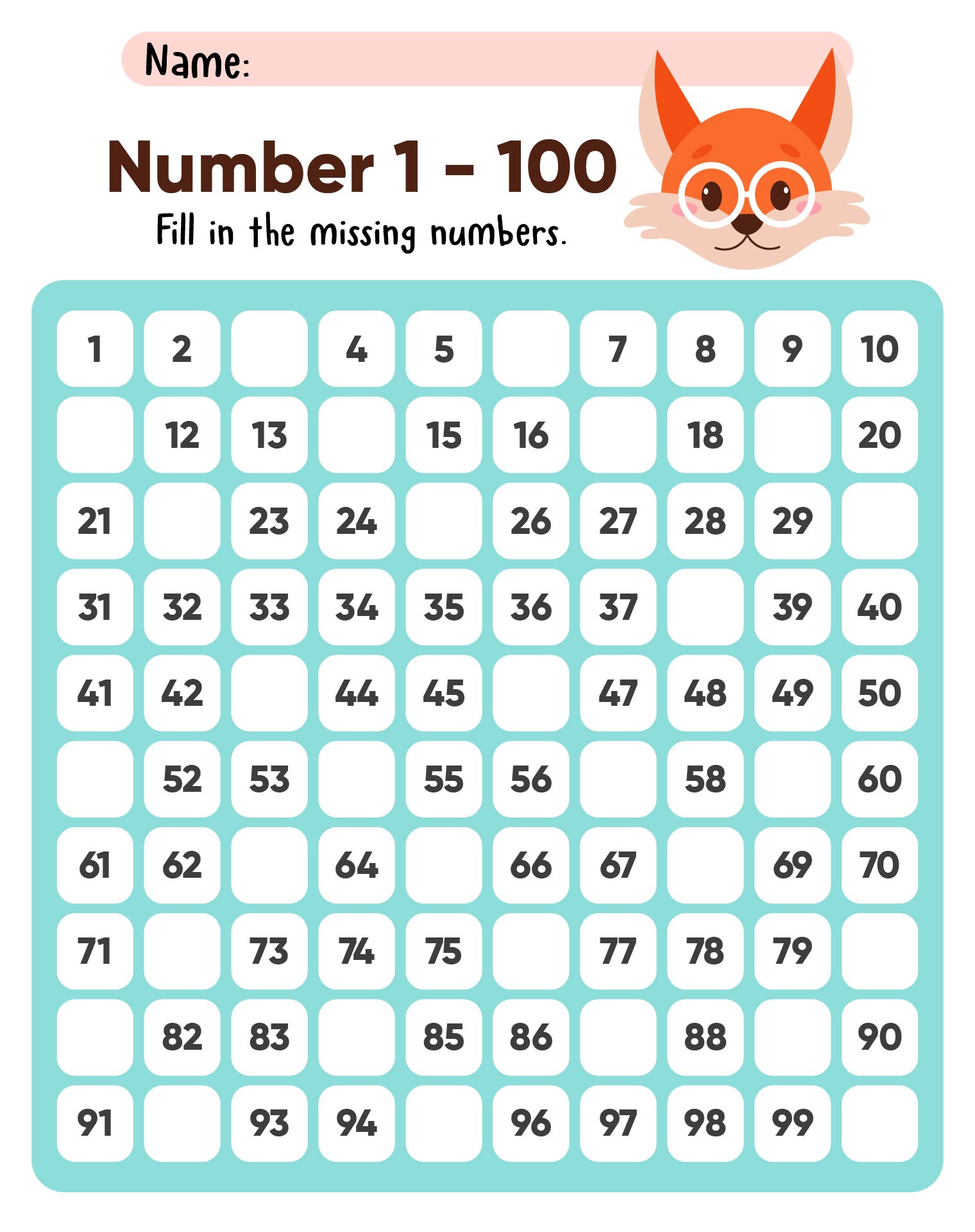 - Pattern Recognition: Printable counting 1-100 sheets are also great for improving pattern recognition skills. Students can identify and predict patterns in the numbers on the chart, such as odd and even numbers, multiples of a certain digit, or ascending and descending sequences.