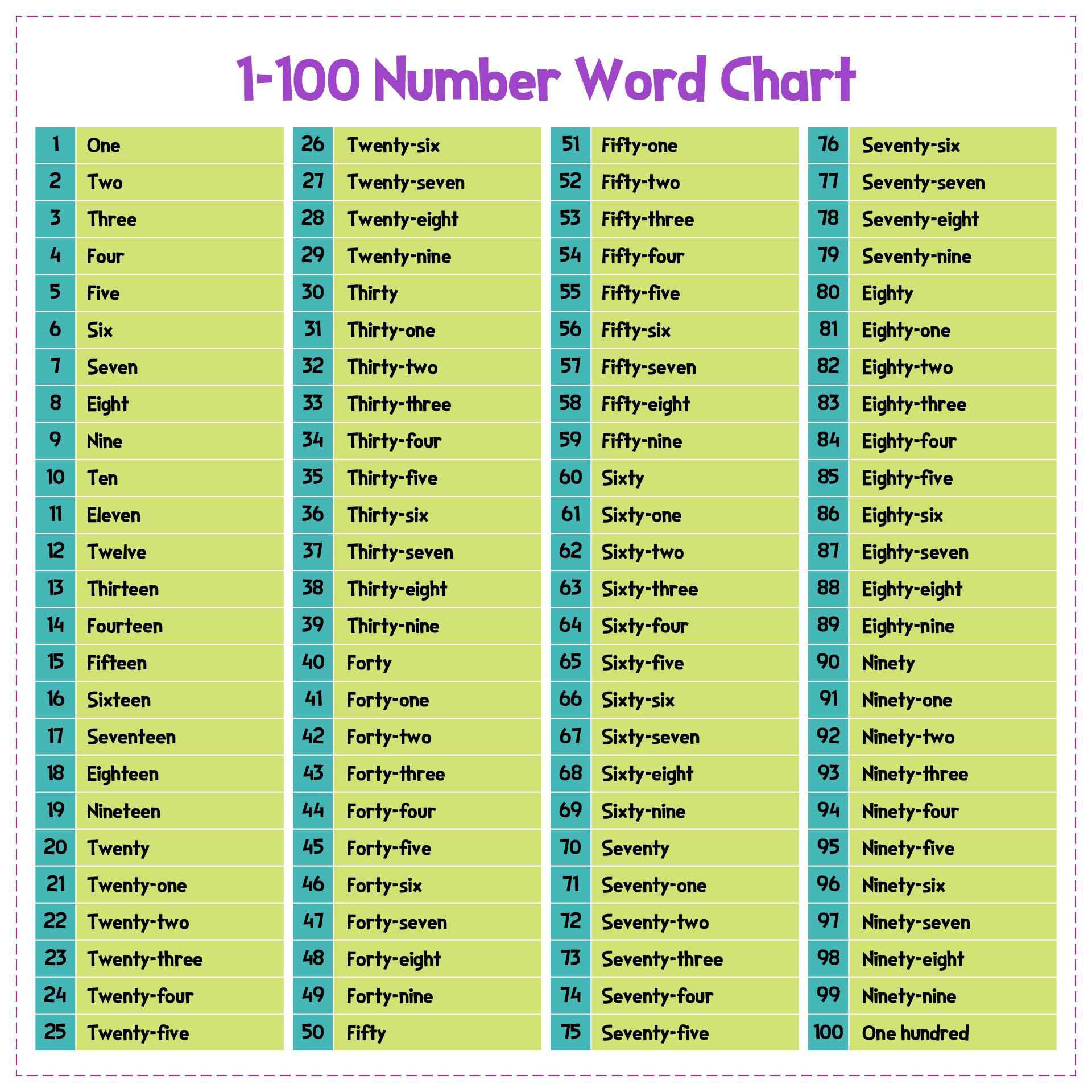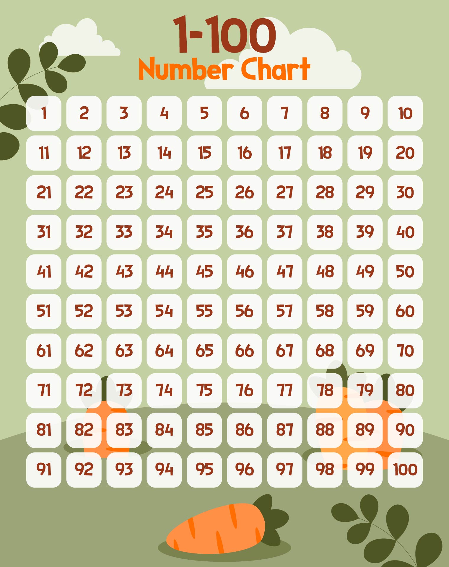 - Number Recognition: By repeatedly seeing and identifying numbers from 1 to 100 on the chart, students can become more familiar and comfortable with numeric symbols. This skill is essential for performing basic Math operations and solving Math problems.