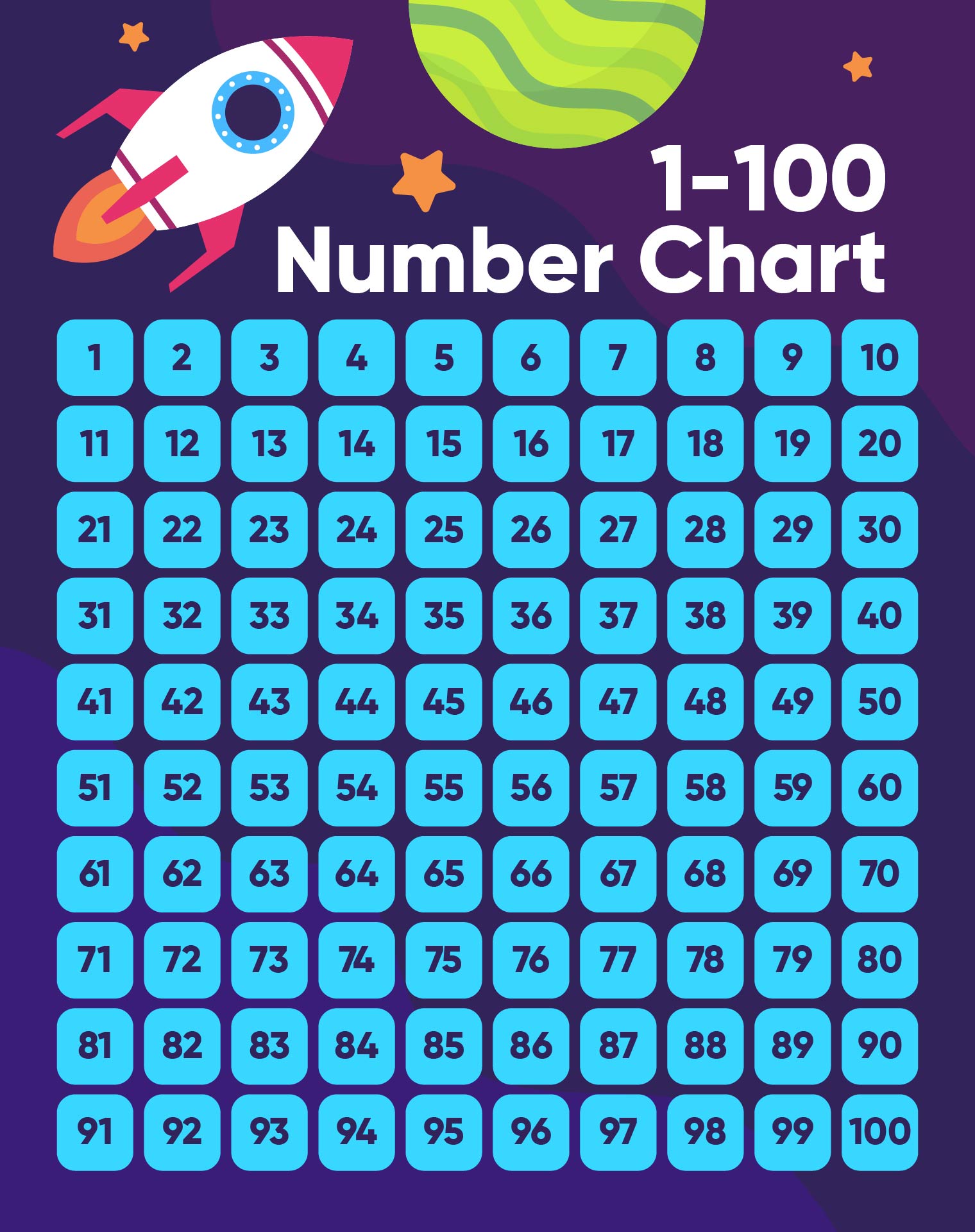 - Begin by introducing your child to the printable counting chart 1-100. Have them practice counting from 1 to 100 using the chart.