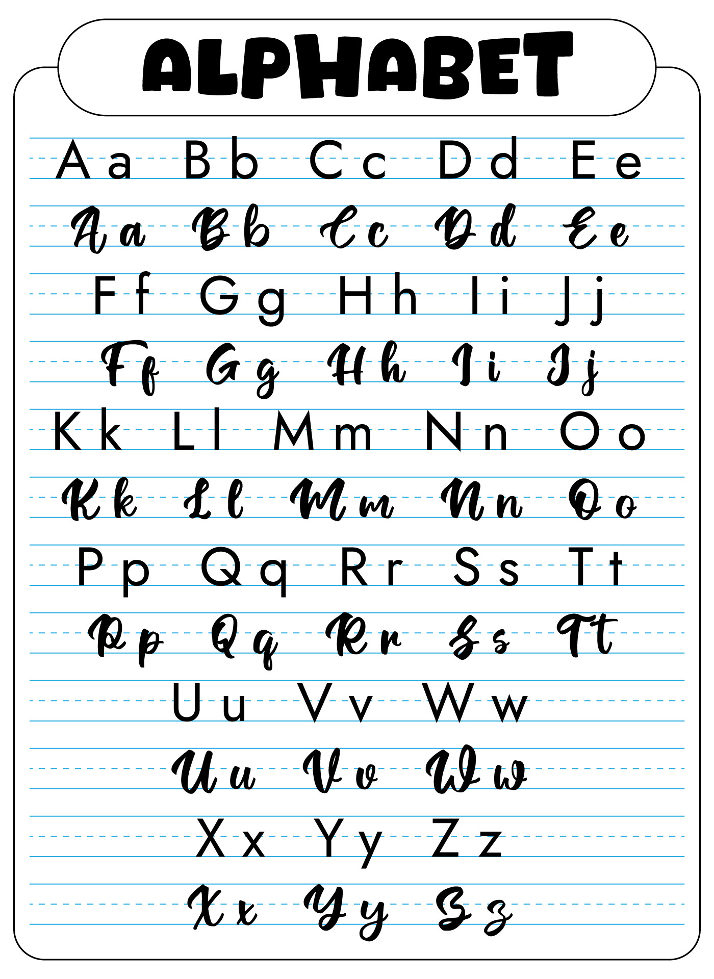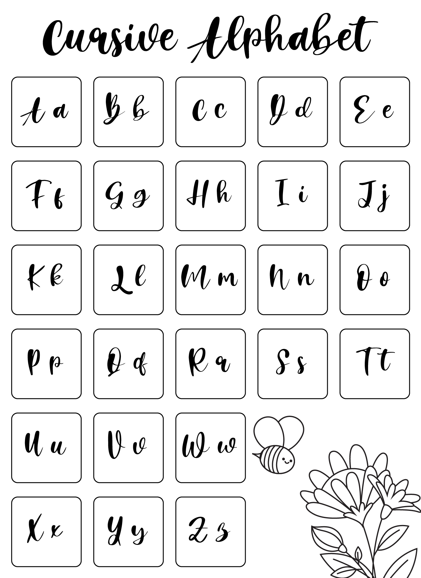 When practicing cursive handwriting, it's important to know which letters are included in the alphabet. The cursive handwriting alphabet printable includes: