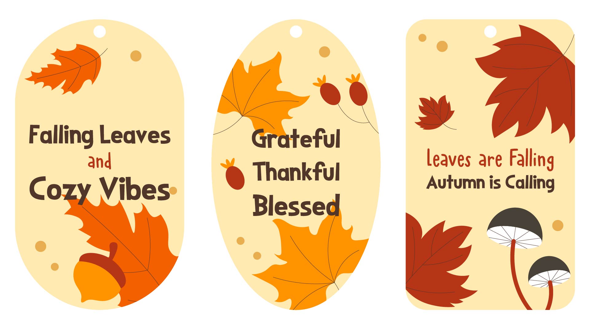 - Classic Thanksgiving Icons: A favorite design idea for Thanksgiving tags is using traditional holiday symbols that highlight the spirit of the season. This could include images of pumpkins, cornucopias, turkeys, and fall leaves.