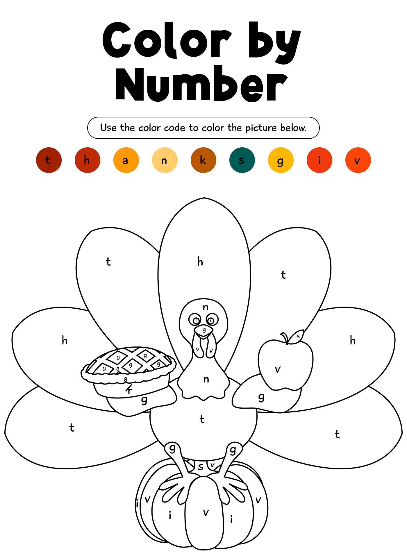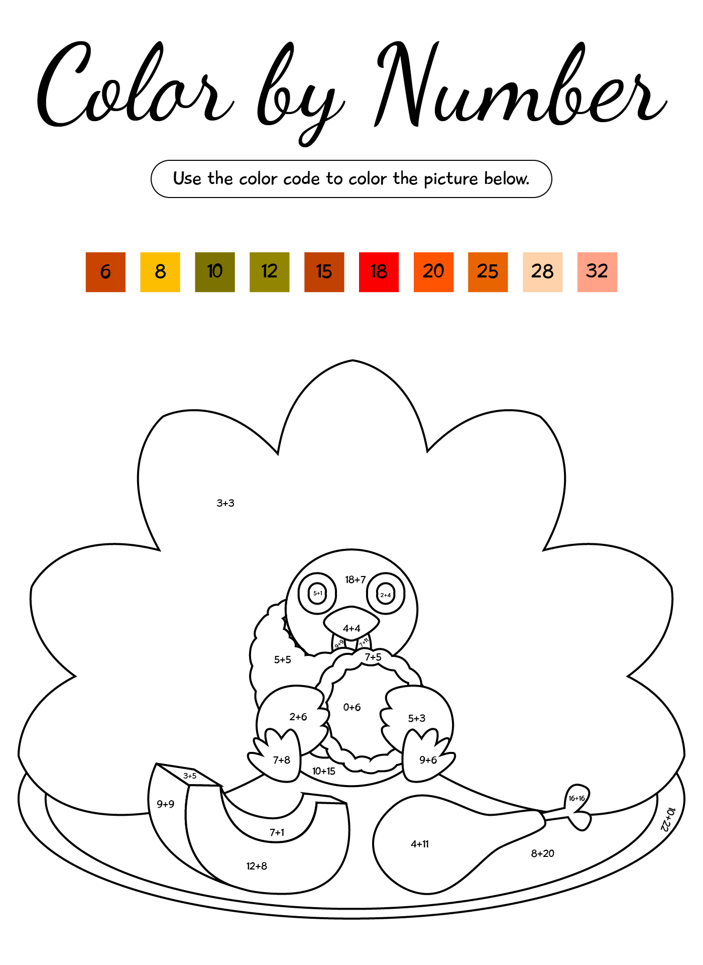- Creativity: Using Thanksgiving color by number printables can also spark creativity in children. While they follow the designated color codes, kids have the freedom to choose how they want to fill in each section. Creativity is a valuable skill that can benefit children in various aspects of their lives.