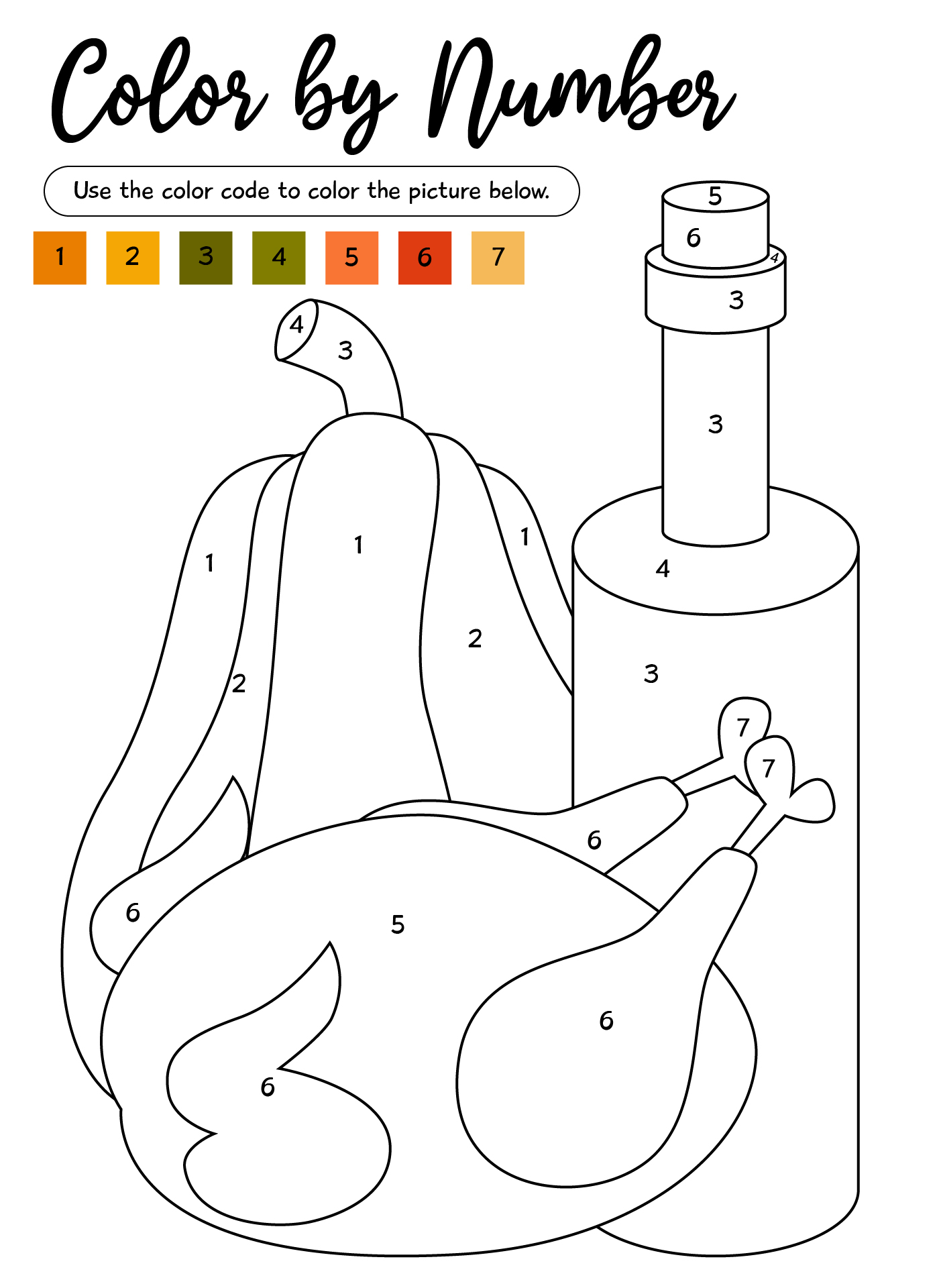 - Color Recognition: One of the fundamental art skills that children can develop with Thanksgiving color by number printables is color recognition. By matching the numbers with the corresponding colors, kids can learn to identify different shades and hues. This activity can also help them understand color schemes and combinations, which are essential in the world of art.